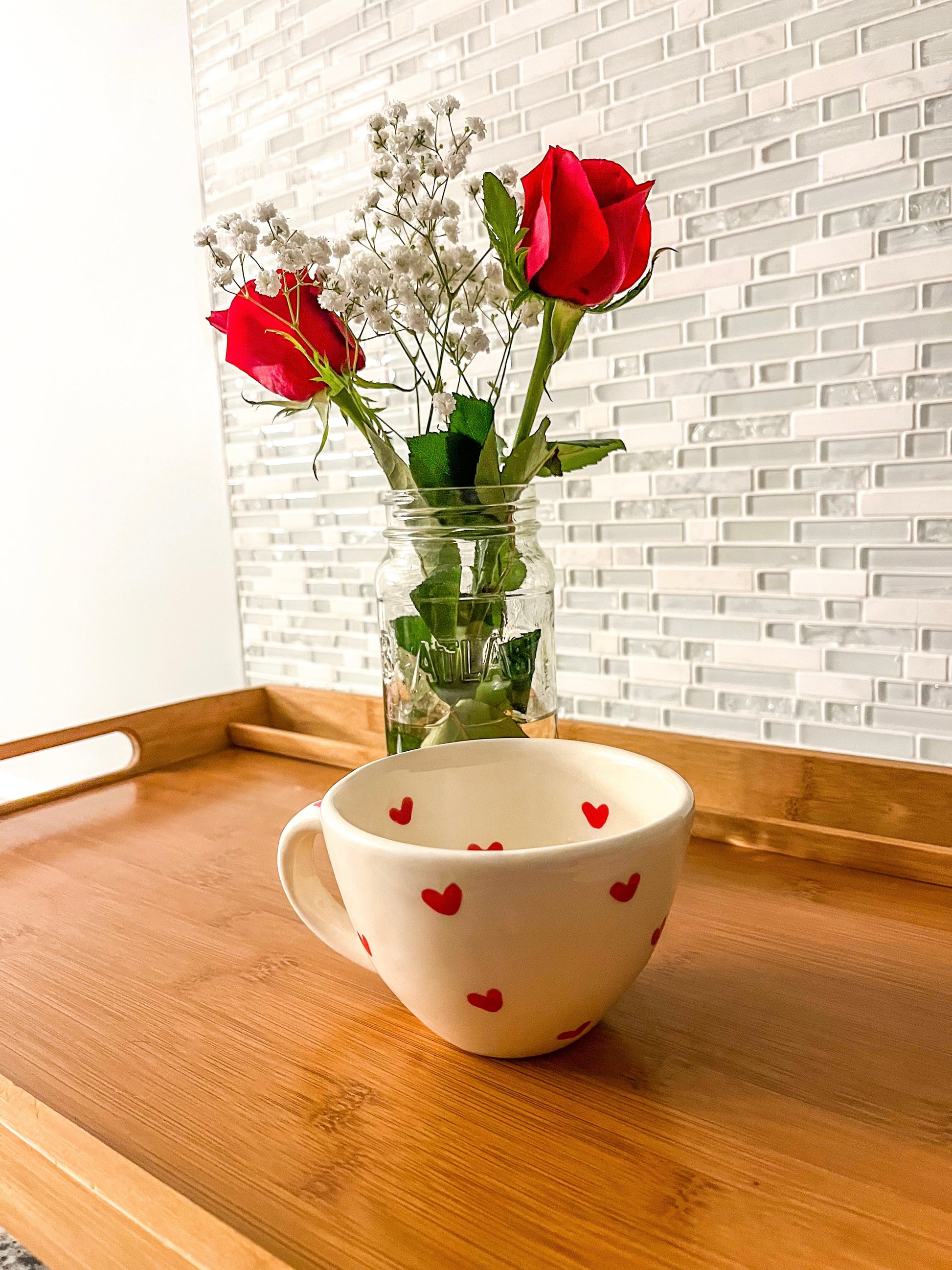 Design: Hand-painted with sweet heart motifs — no two mugs are exactly alike