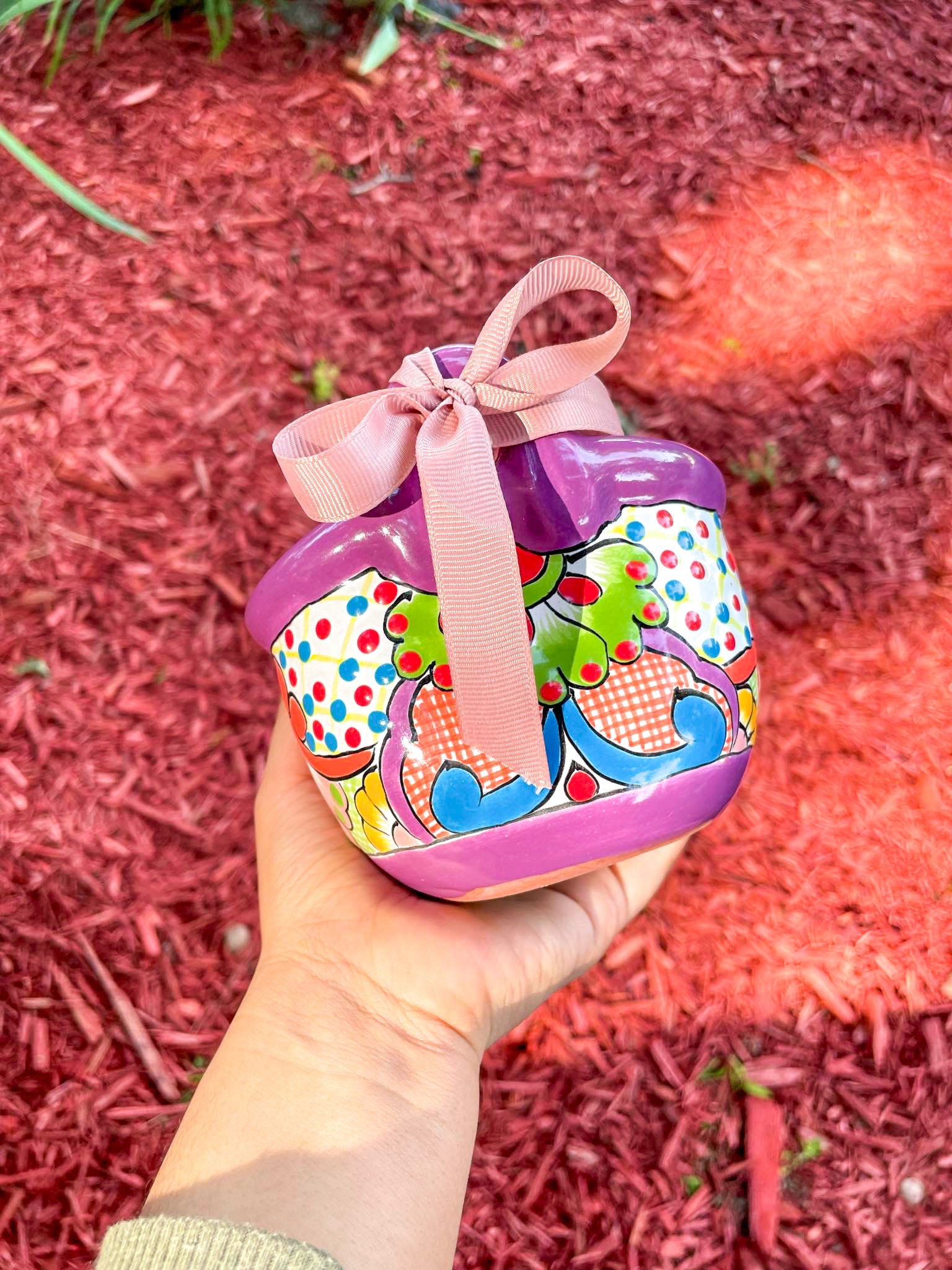 Ideal for displaying succulents, herbs, or small flowering plants, these Talavera Plant Pots boast lively patterns and a glossy finish that bring whimsy and sophistication to any setting, indoors or outdoors. Their compact size allows for versatile placement on windowsills, shelves, patios, or as delightful centerpieces on your dining table. Gift them to a loved one by adding small gifts such as makeup!