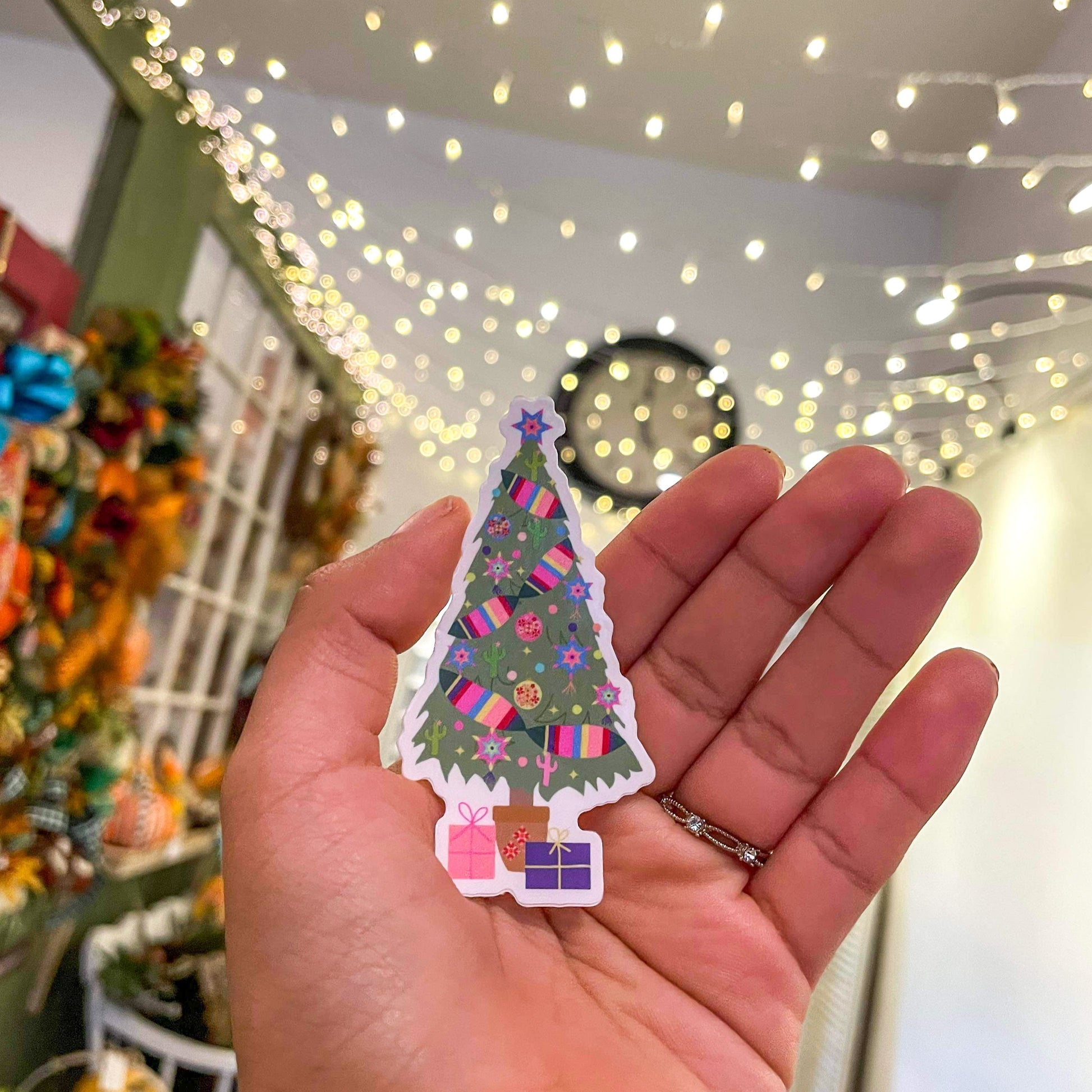 This beautiful Christmas tree sticker is adorned with traditional Mexican designs, adding a unique and festive touch to your holiday decor. Add some colorful flair to your home with this pretty sticker!